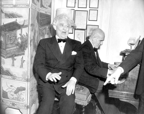Tenor Martinelli accompanied by Maestro Toscanini at the Maestro's home, 1951.